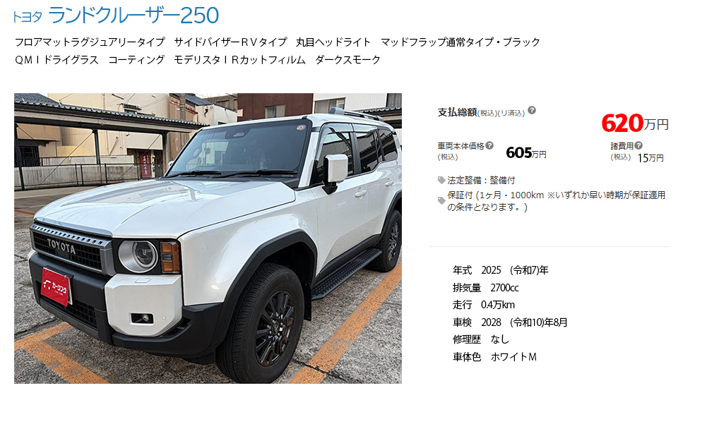 中古車在庫:トヨタ ランドクルーザー250 支払総額(税込) 620万円